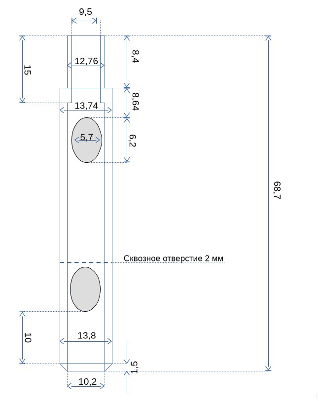 На чертеже не указан сам поршенёк и его пружинка. "Сквозное отверстие 2 мм" - это как раз для запорного штифта пружинки. Косвенные параметры пружинки: "Обещал снять давление на оригинальном клапане Текстом: 340 грамм на начало движения клапана 520 грамм на начало открытия клапана 780 грамм на полностью открытый клапан" (C) Сергей Ярец KLR650E '09