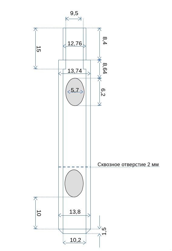 На чертеже не указан сам поршенёк и его пружинка. "Сквозное отверстие 2 мм" - это как раз для запорного штифта пружинки. Косвенные параметры пружинки: "Обещал снять давление на оригинальном клапане Текстом: 340 грамм на начало движения клапана 520 грамм на начало открытия клапана 780 грамм на полностью открытый клапан" (C) Сергей Ярец KLR650E '09